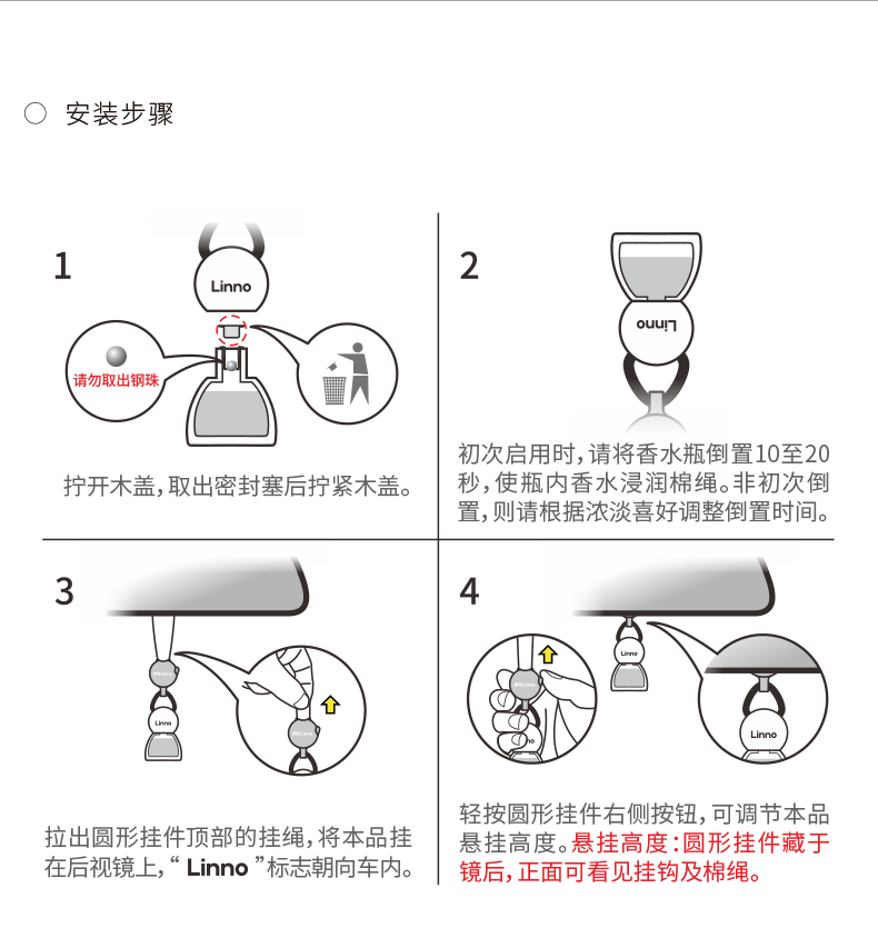 7. 请注意调节香水瓶的悬挂高度,以防香水瓶击打前挡玻璃。